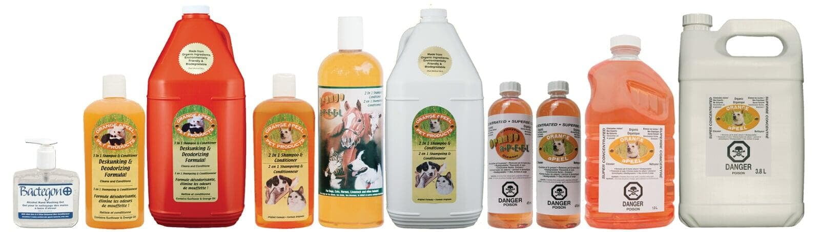 There are Orange aPEEL™® formulations for home, office, business, and industrial uses. For pet care and kennels. Stable and farm use, cleaning livestock trailers and vehicles as well as RVs. Garden care or even personal care! For the product with thousands of uses that fits your individual needs, contact us at 905-387-1900 or by email.